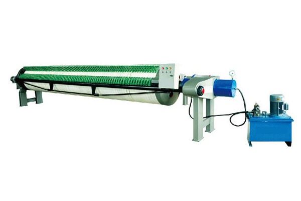 隔膜壓濾機(jī),隔膜壓榨壓濾機(jī)由隔膜板和廂式濾板排列組成濾室,在輸料泵的壓力作用下將漿料輸入濾室,通過過濾介質(zhì)(濾布)將濾料中的固體和液體分離,當(dāng)漿料中的固體形成餅后,再向隔膜通入空氣,對濾室內(nèi)的固體充分壓榨,降低含水率。對于粘性物料的過濾及對含水率要求較高的用戶,此機(jī)更有其獨(dú)特的特性。